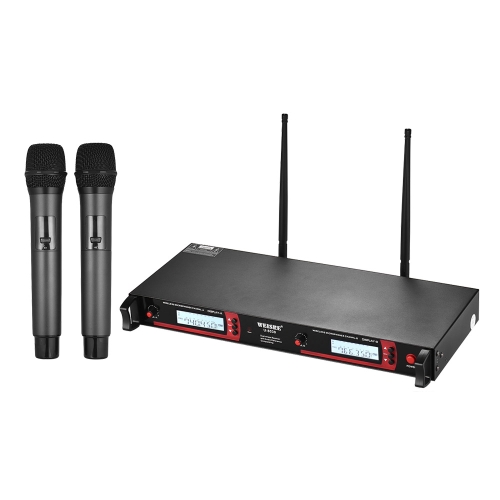 Features: Professional UHF wireless dual channel microphone system, perfect for stages, ballrooms Karaoke, families party, meeting, as well as for...